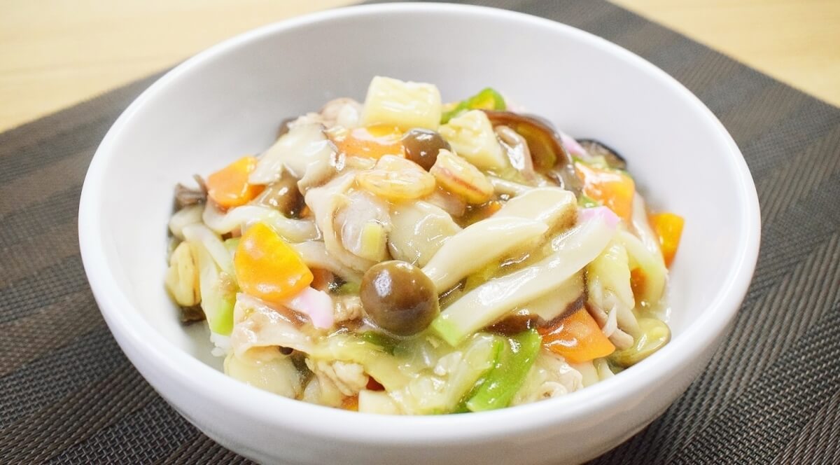 和風野菜ミックスのあんかけうどんレシピニッスイ。