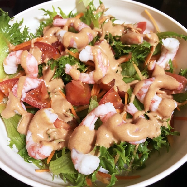 たっぷり小エビのオーロラソースサラダ豆乳グルトレシピマルサンアイのお料理レシピマルサンアイ株式会社。
