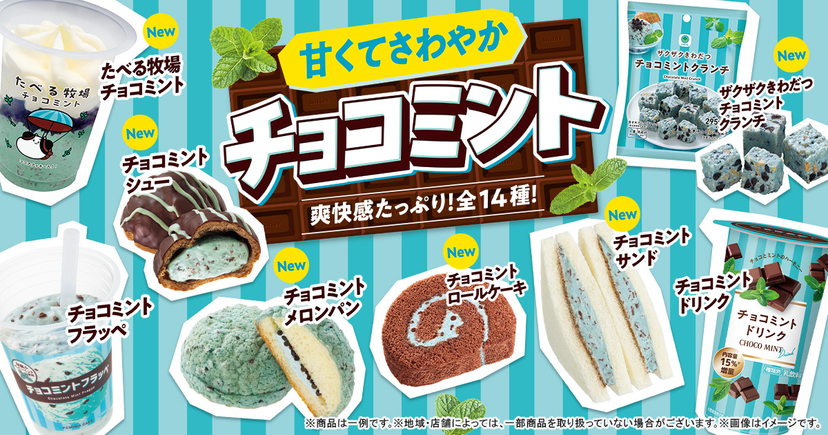 チョコミント好き必見!大人気企画の品数が増えて帰ってきた!甘くてさわやか「チョコミント」フェア6月10日 火 より開催爽快感たっぷりな全14種類が大集合!株式会社ファミリーマートのプレスリリース。