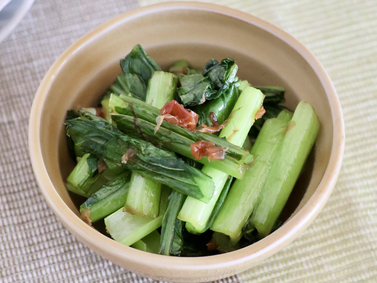 腎臓病食レシピ副菜 さっぱり 減塩 小松菜の和風炒め 低たんぱく管理栄養士監修。