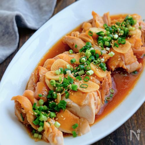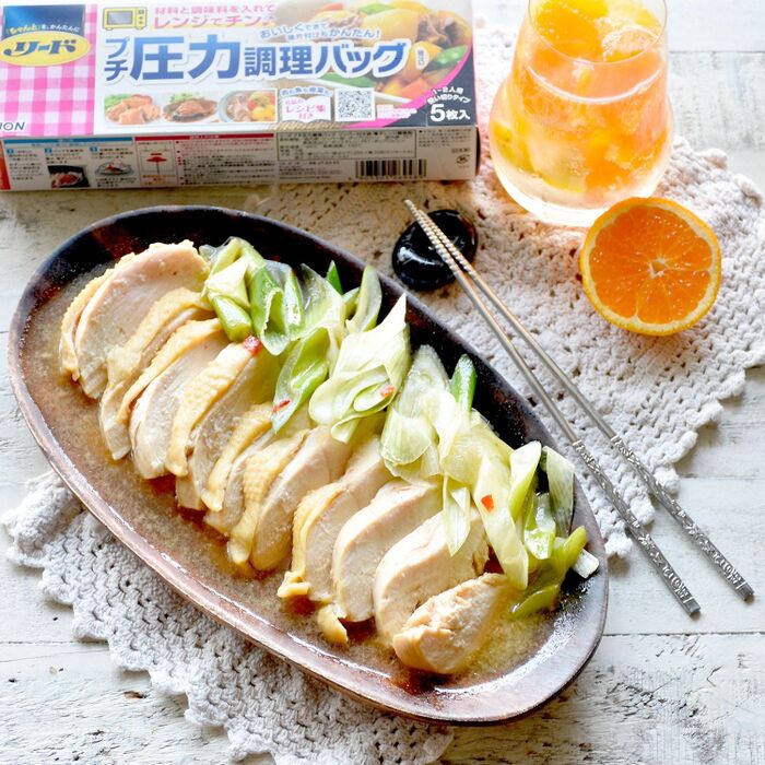 作り置きにも!電子レンジで♪簡単ジューシー蒸し鶏。