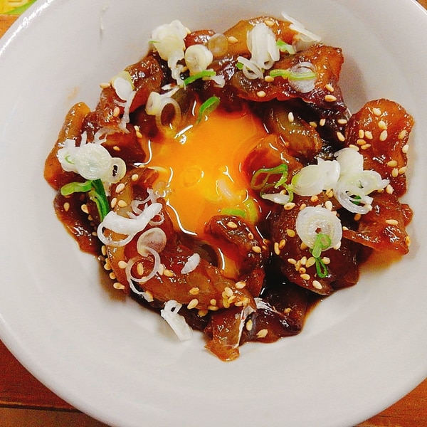 レシピ 焼肉のタレで簡単!ユッケ風マグロ丼作りおき3stepレシピ『sayacafe』。