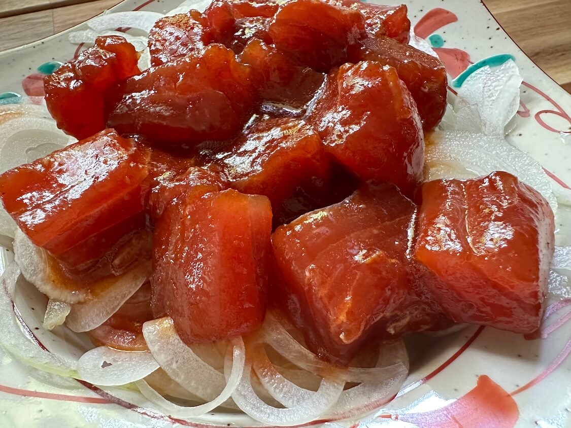 レシピ 余らせがちな餃子のタレを有効活用!「コリアン風マグロユッケ」nomooo ノモー。