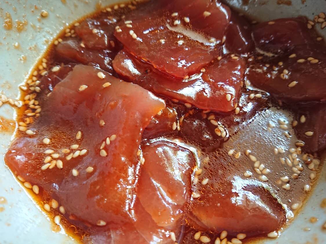 焼き肉のタレでびんちょうまぐろのユッケ ✰︎miyu✰︎Snapdish スナップディッシュID:LvCOaaa。