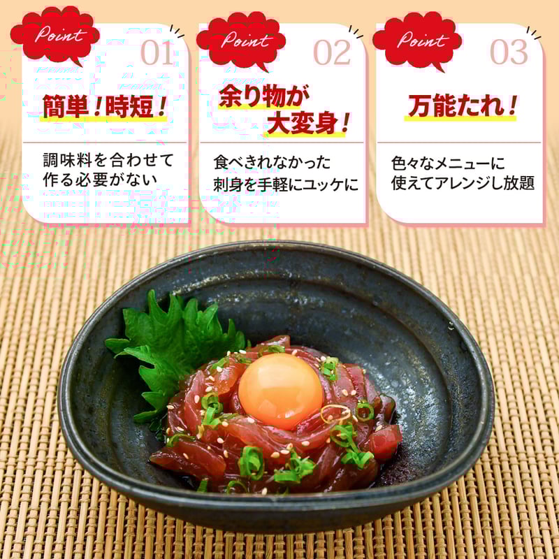 まぐろの刺身が美味しくなるユッケのレシピ。簡単に味が決まる!ピリッとコク旨タレカライチ。