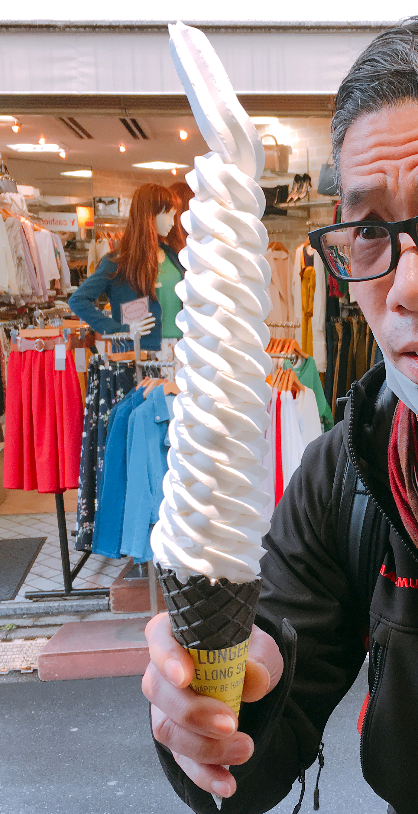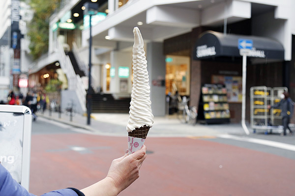 大阪ミナミのアメリカ村の日本一長いと評判の「40cmソフトクリーム」山元紙包装社。