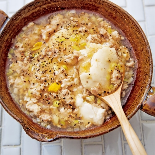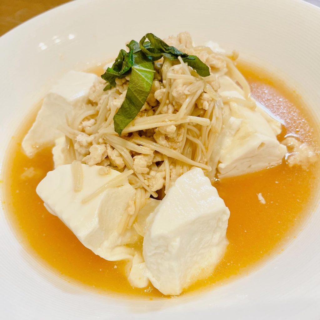 わずかな時間で深い旨味「鶏ひき肉のそぼろ餡豆腐」レシピ。