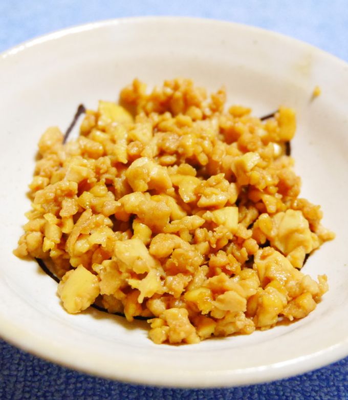 じゃがいもと高野豆腐の鶏そぼろ煮。