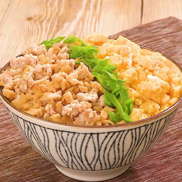 見た目も味も鶏そぼろ! 豆腐そぼろの2色丼。
