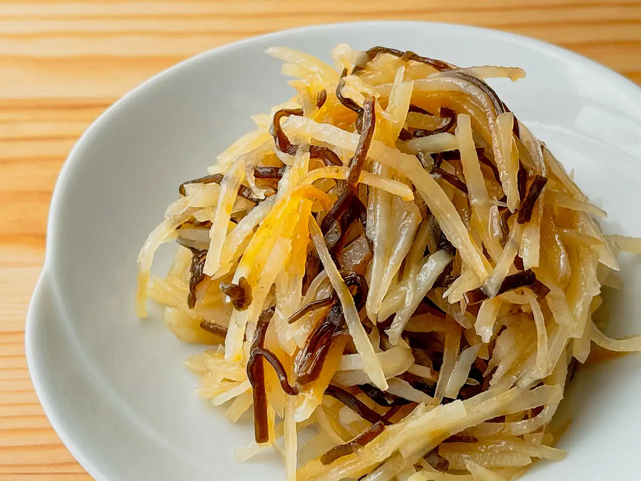 野菜ひとつ 千切りじゃがいもの塩昆布サラダ。