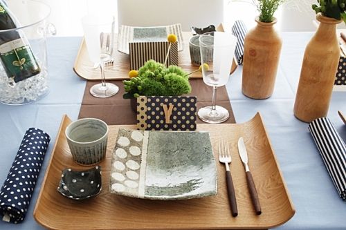 北欧スタイルインスピレーション ”木目×ライトブルー”テーブルセッティング。