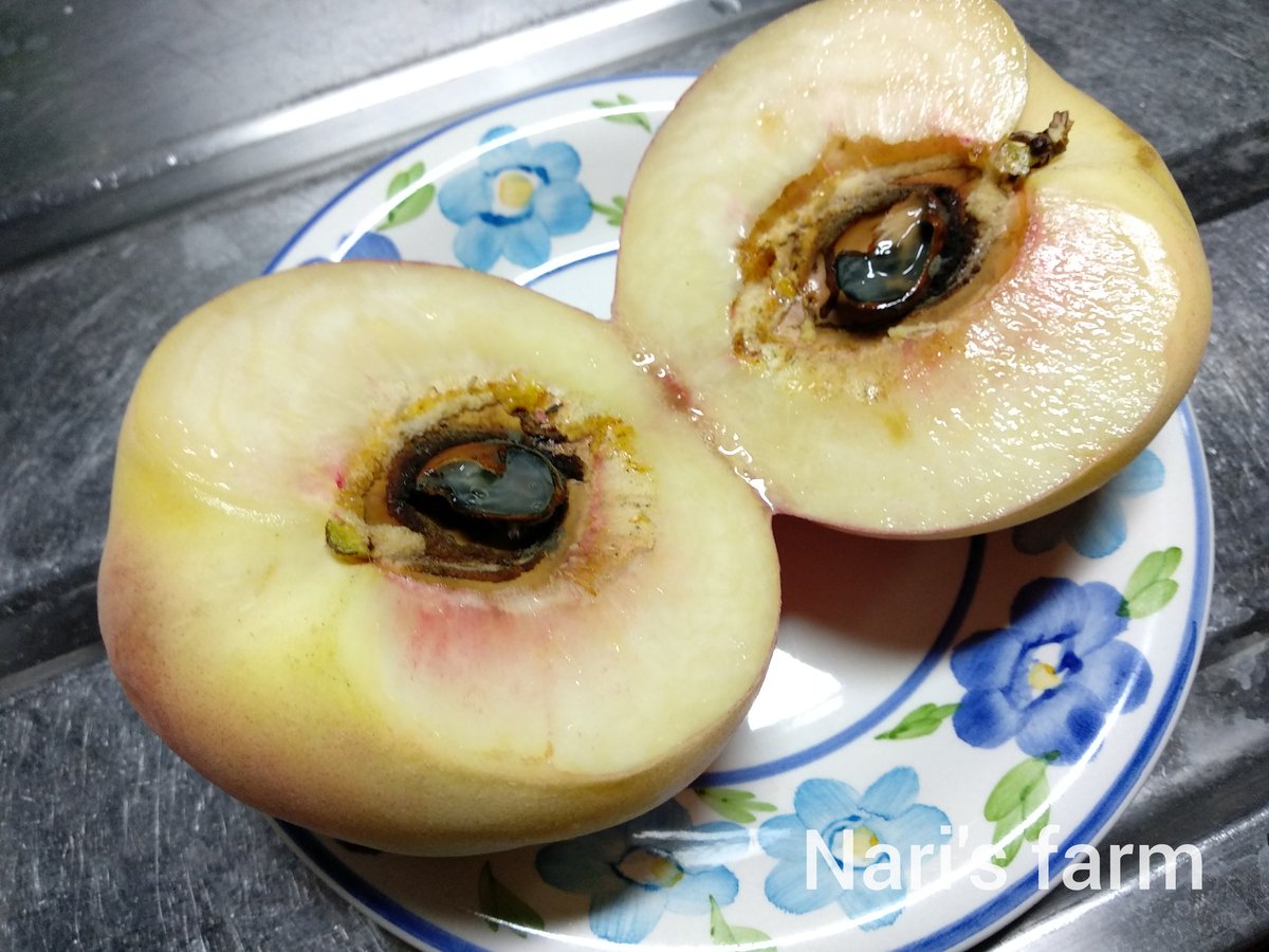 Nari's Farm ナリズファーム 🍑 on X: "種の中の核だけにカビが生えている場合は、その部分をくり抜けば食べられます😋参考までに昨年のツイを🍑"X。