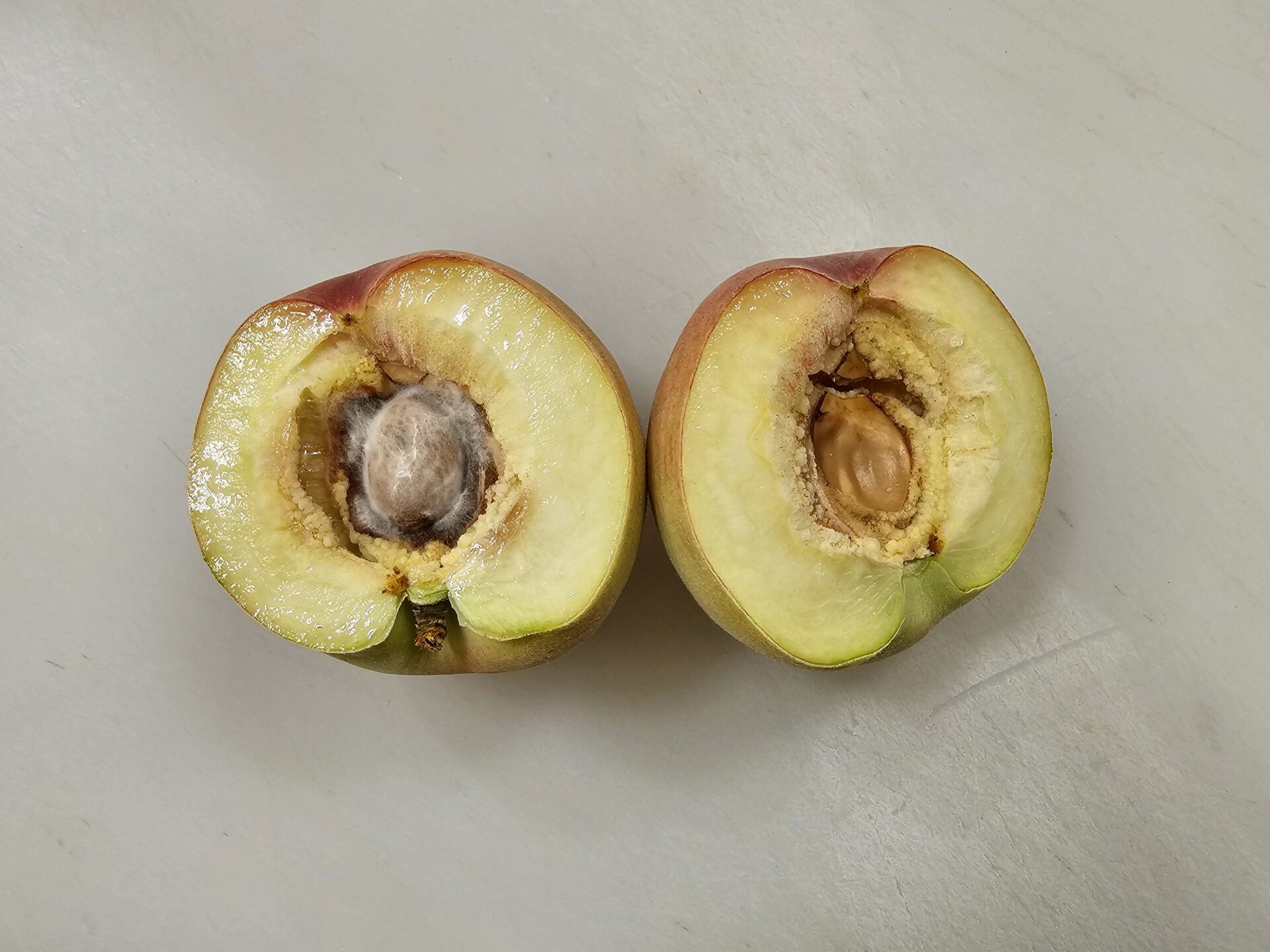 核割れ桃の中が空洞で茶色く変色して、カビが生える原因を解説ベジふる。