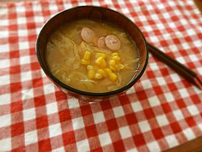 めんつゆだし解凍 冷凍千切りキャベツのサラダ。