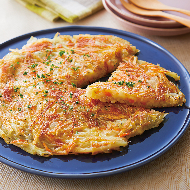 チーズ無し!じゃがいもと人参のカリモチガレット。