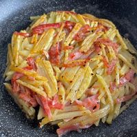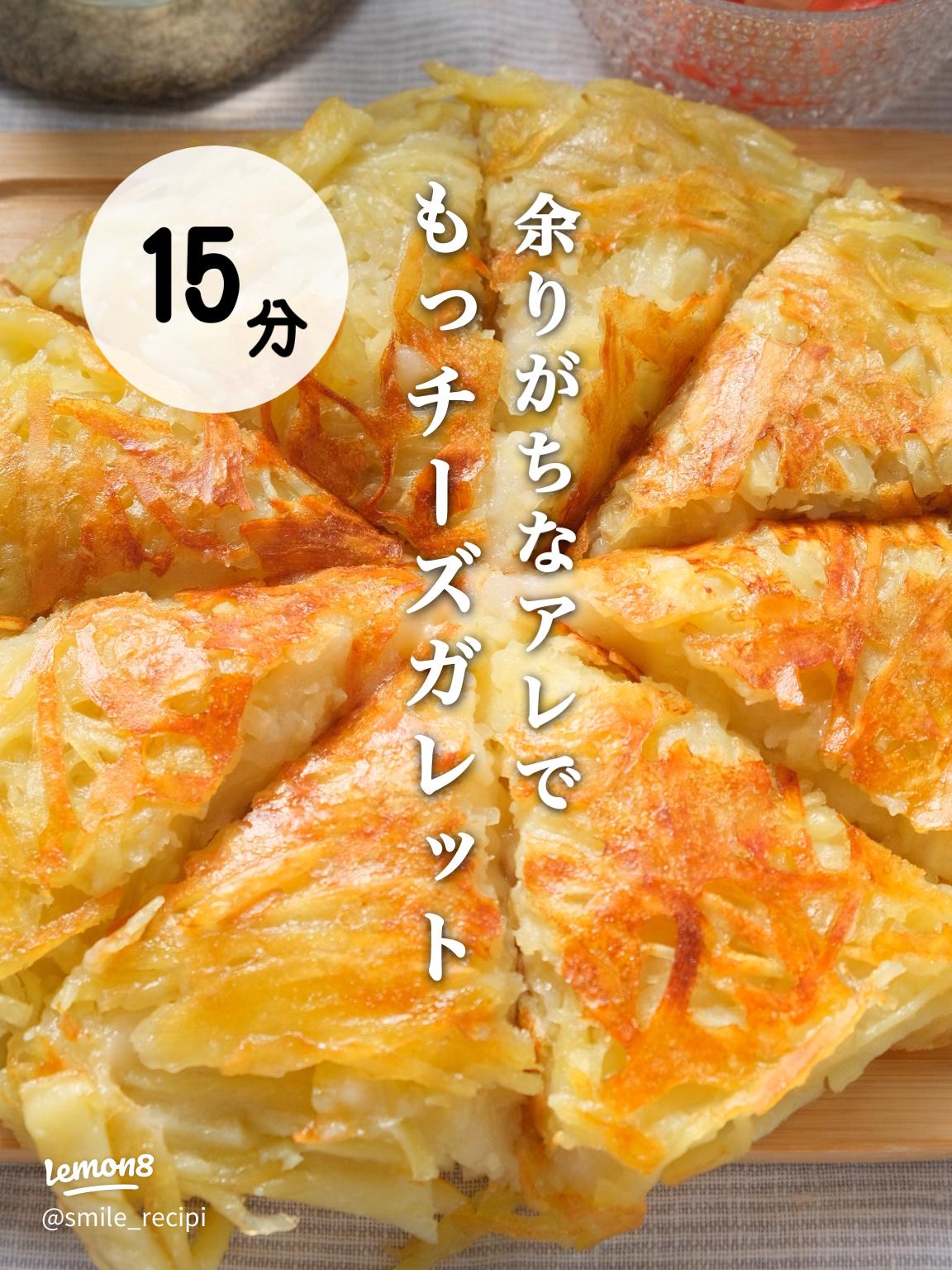 レシピはこちら💁♀️, 本日は, 『もっチーベーコンガレット』を紹介します。, 材料は👩🍳, じゃがいも:2〜3個, 餅:1から2個,とろけるチーズ:ひと握り, ベーコン:1〜2袋, 片栗粉:大さじ1 , 仕上げは, ケチャップで食べてもおっけい!, 今回はフォロワーさんおすすめで,ポン酢にラー油をかけて食べたよ👍, 作り方は🍳, ①じゃがいもは皮を剥いで千切りにして,。