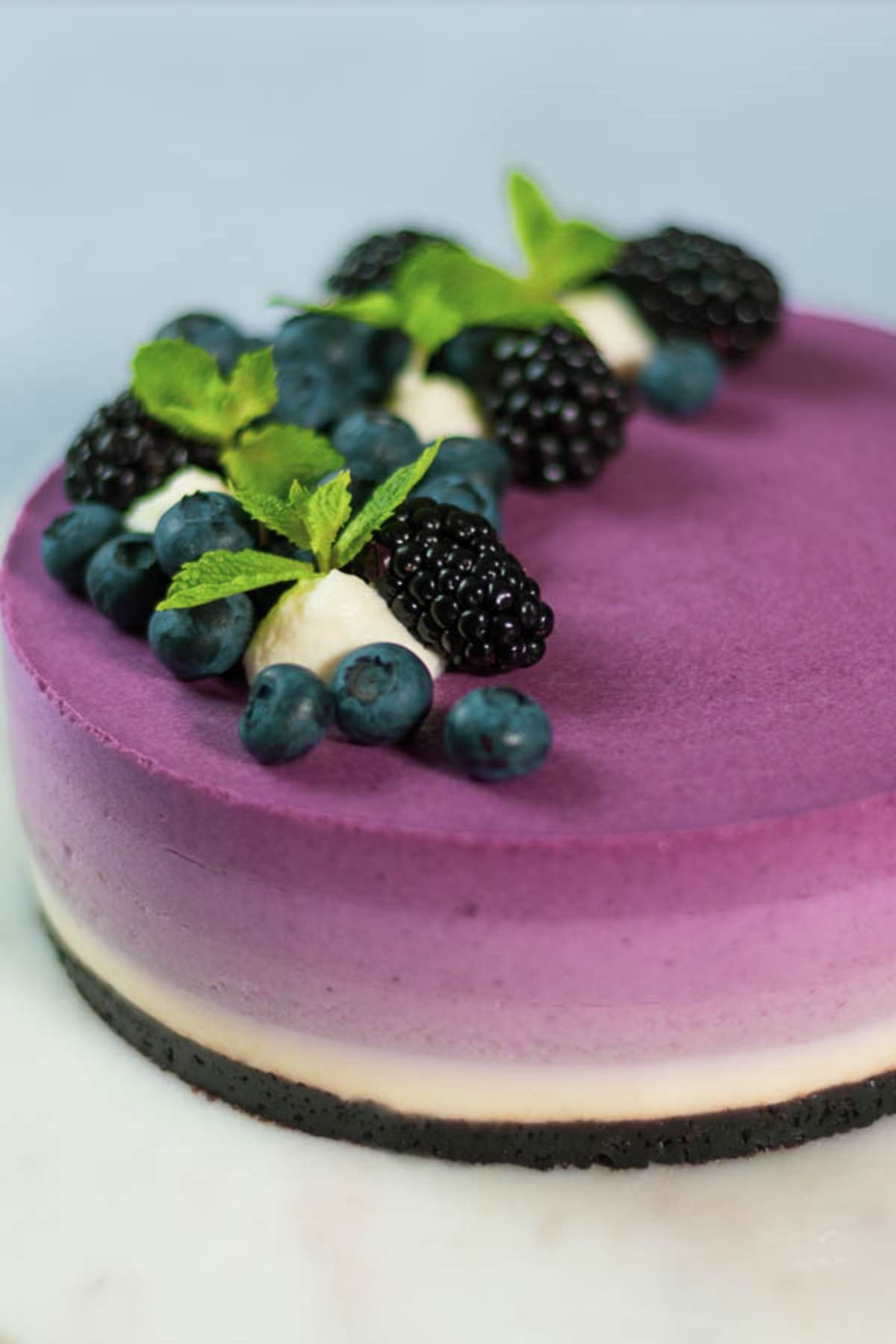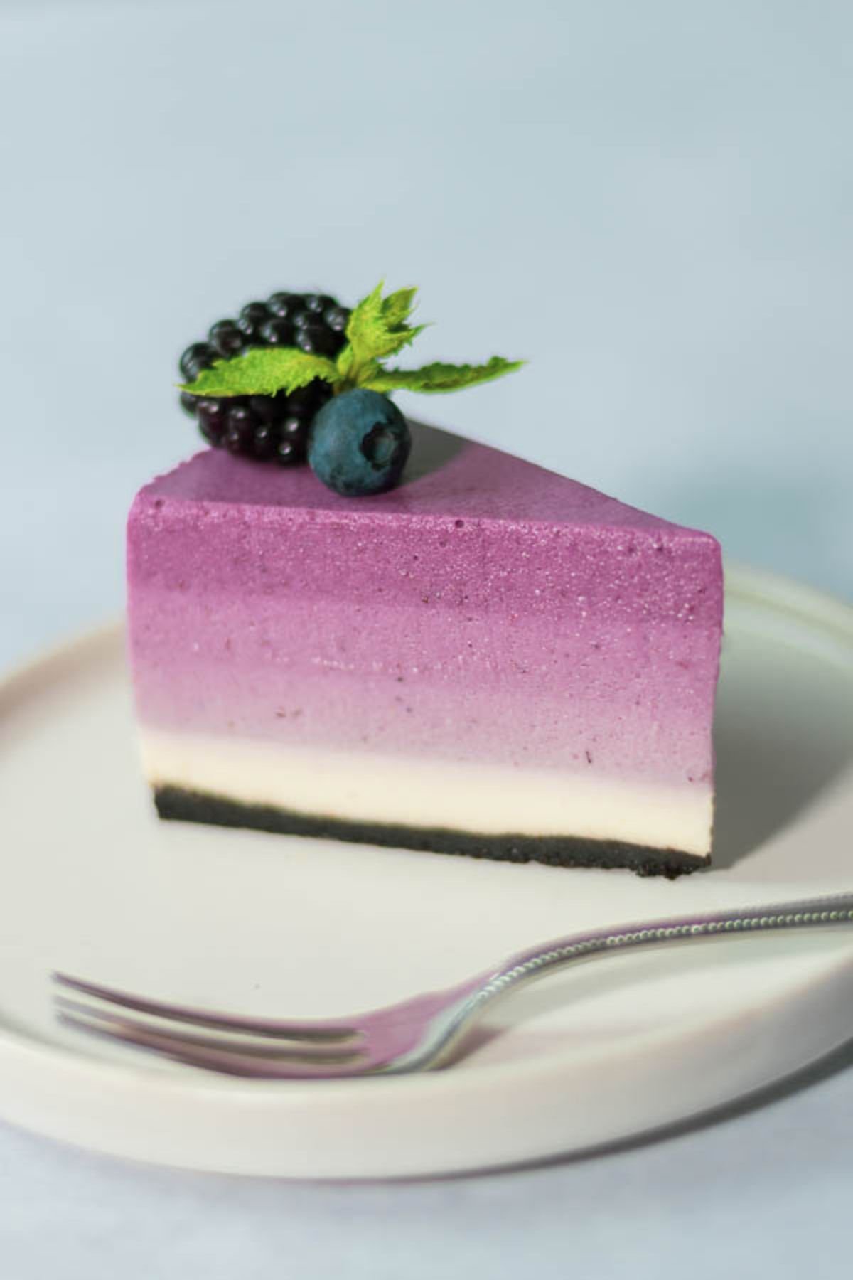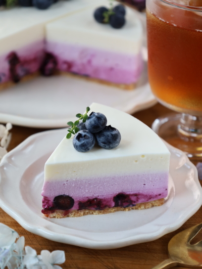 グラデーションが素敵♥6層ブルーベリーチーズケーキ。