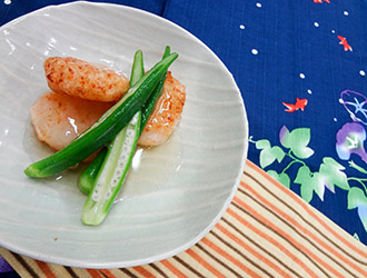 エビ餅とオクラの銀あんお料理さまさまごぜん様さまRCCラジオRCC中国放送。