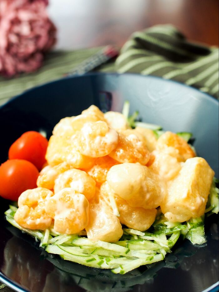 もちっプリっ♪「餅とエビのマヨネーズ和え」の作り方。