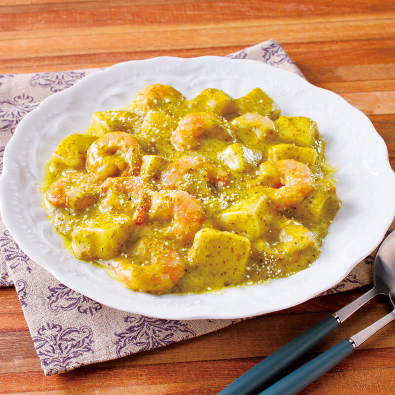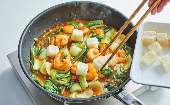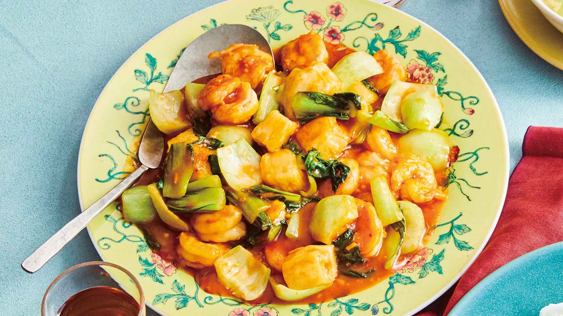 えびと餅のチリソース mio2021年12月号レシピClip。