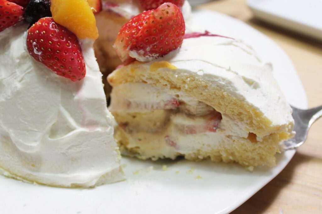 初心者向け プリン入り!いちごとバナナのドームケーキ。