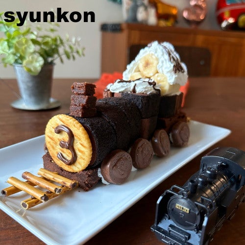※追記あり チョコ好きの子に 簡単!!チョコバナナの機関車ケーキ*3歳の誕生日ケーキ。