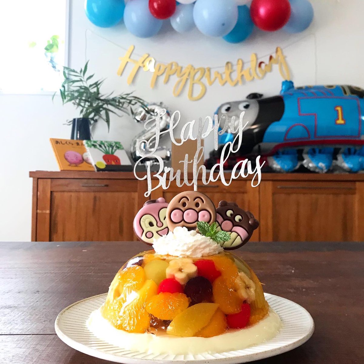 2歳の誕生日ケーキ*誕生日ゼリーとアンパンマン。