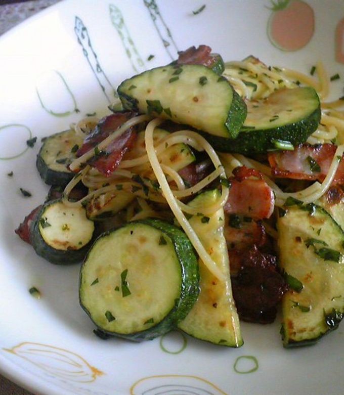 冷製パスタ ズッキーニ ベーコン (302 無料画像)