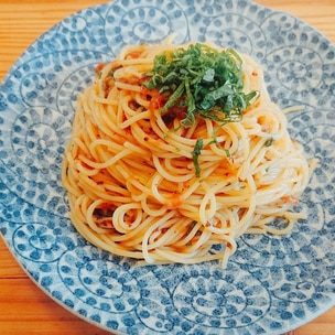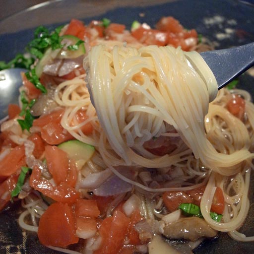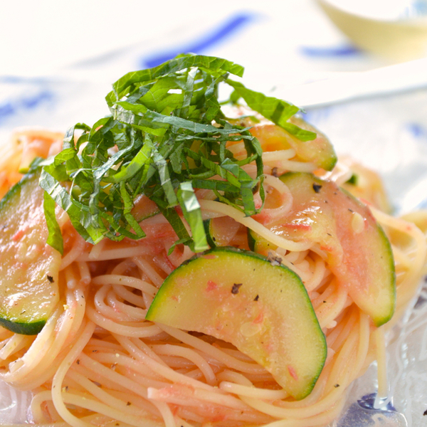 ズッキーニ・トマト・明太子の冷製パスタ。
