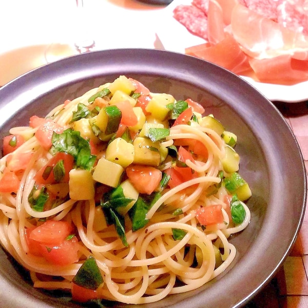 トマトとズッキーニの冷製パスタ by 09maru04クックパッド簡単おいしいみんなのレシピが392万品。