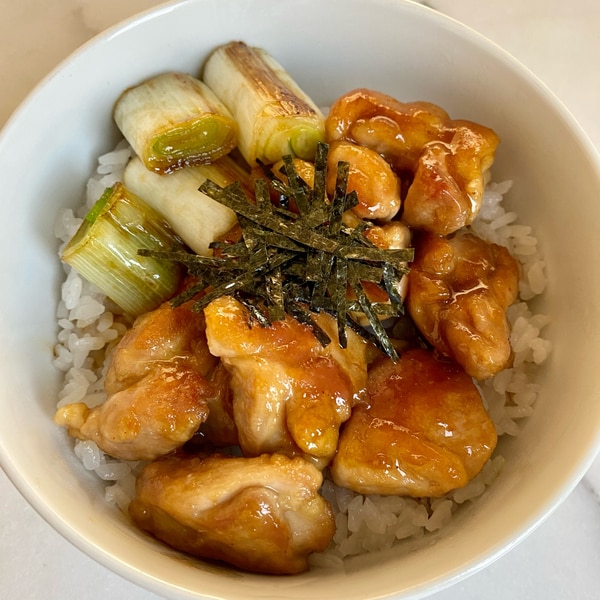 鶏もも肉とねぎの焼きとり丼。