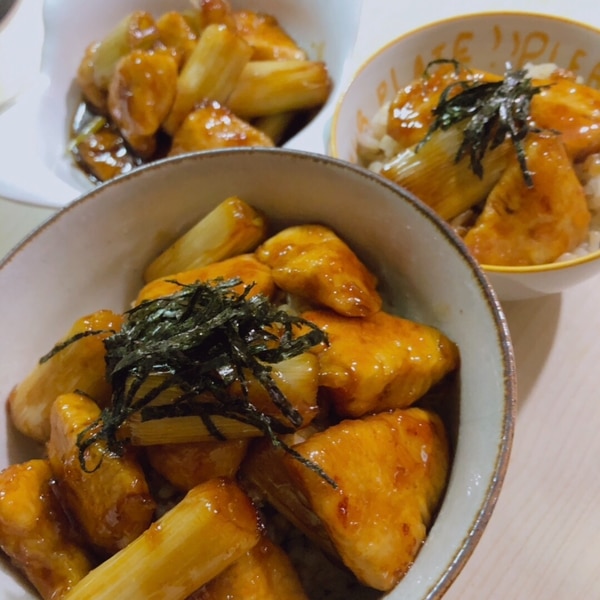 「ねぎま風焼き鳥丼」甘辛タレでごはんが止まらない♪。