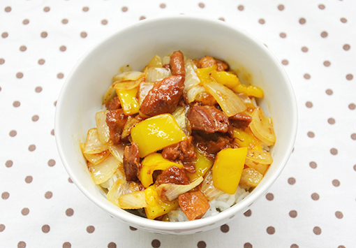 市販のタレを使った焼き鳥丼。