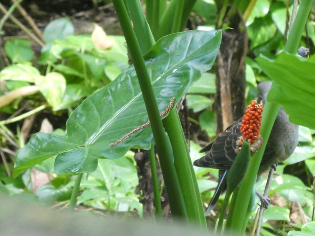 クワズイモの実を食べるキジバト那覇市立森の家みんみん。