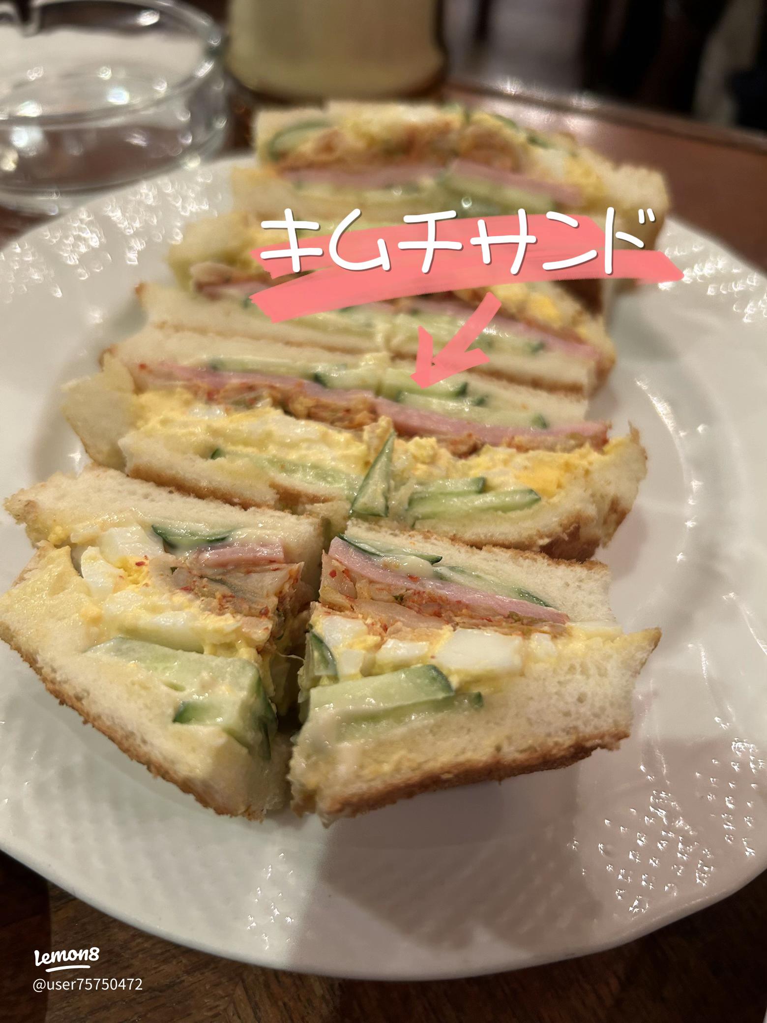 『さすが鶴橋。』超有名喫茶店 ロックヴィラ 特製キムチサンドをいただきまーす!タマゴとキュウリ、パン、そしてキムチ!!2022夏そのへんのアジア。