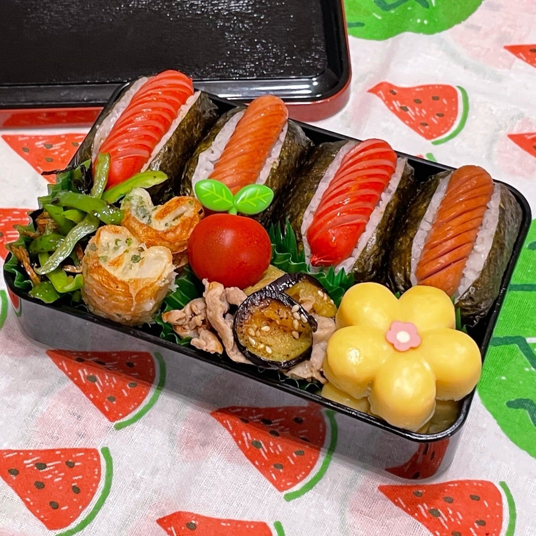 夏のお弁当作り ゆるっと簡単極ウマ麵弁当 さっぱり塩分美味しいおにぎり。