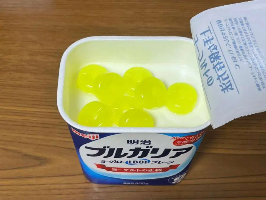 パインアメ公式アレンジ、ヨーグルトにパインアメいれるだけで激ウマヨーグルトにする方法。