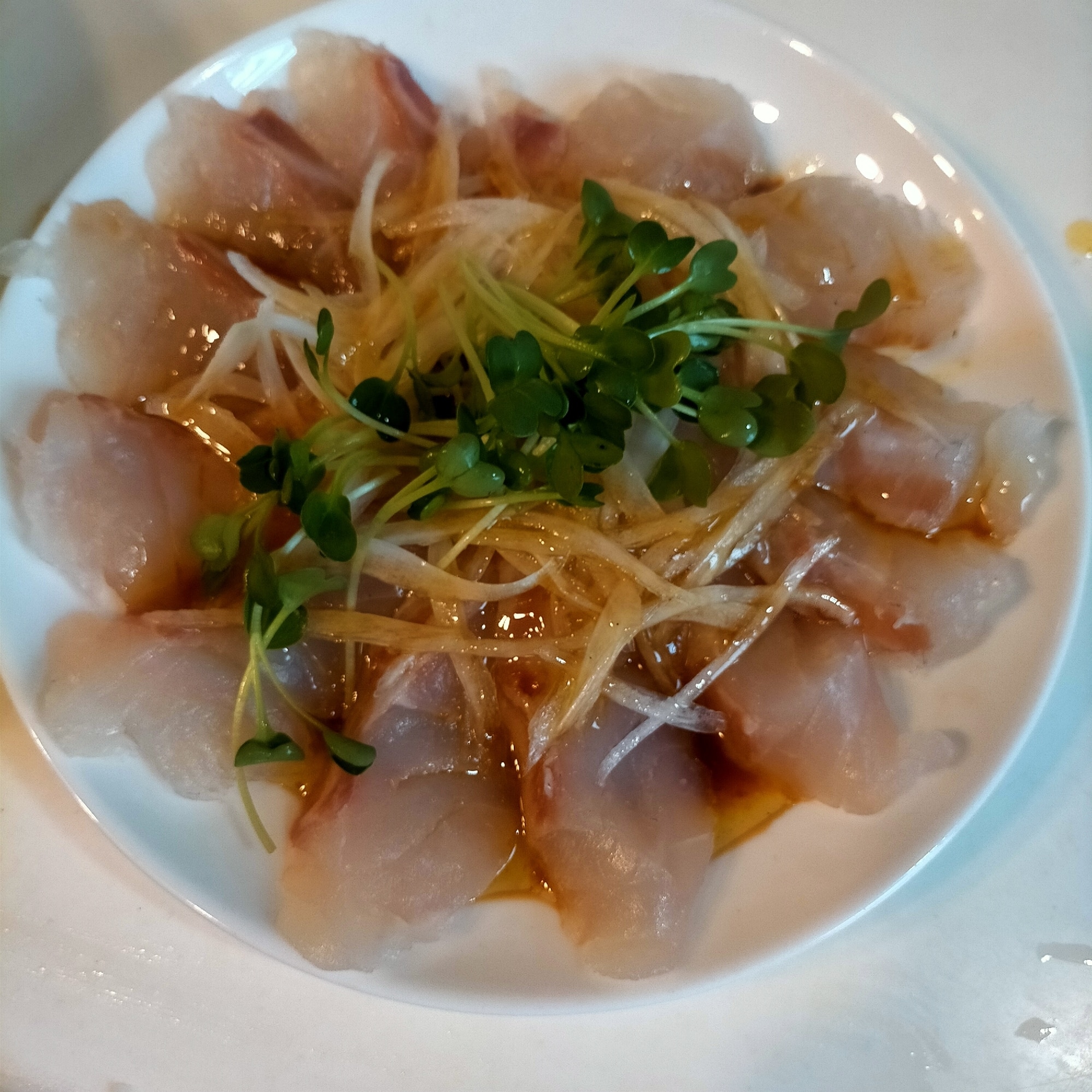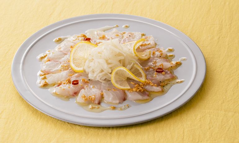 玉ねぎソースの鯛のカルパッチョ。