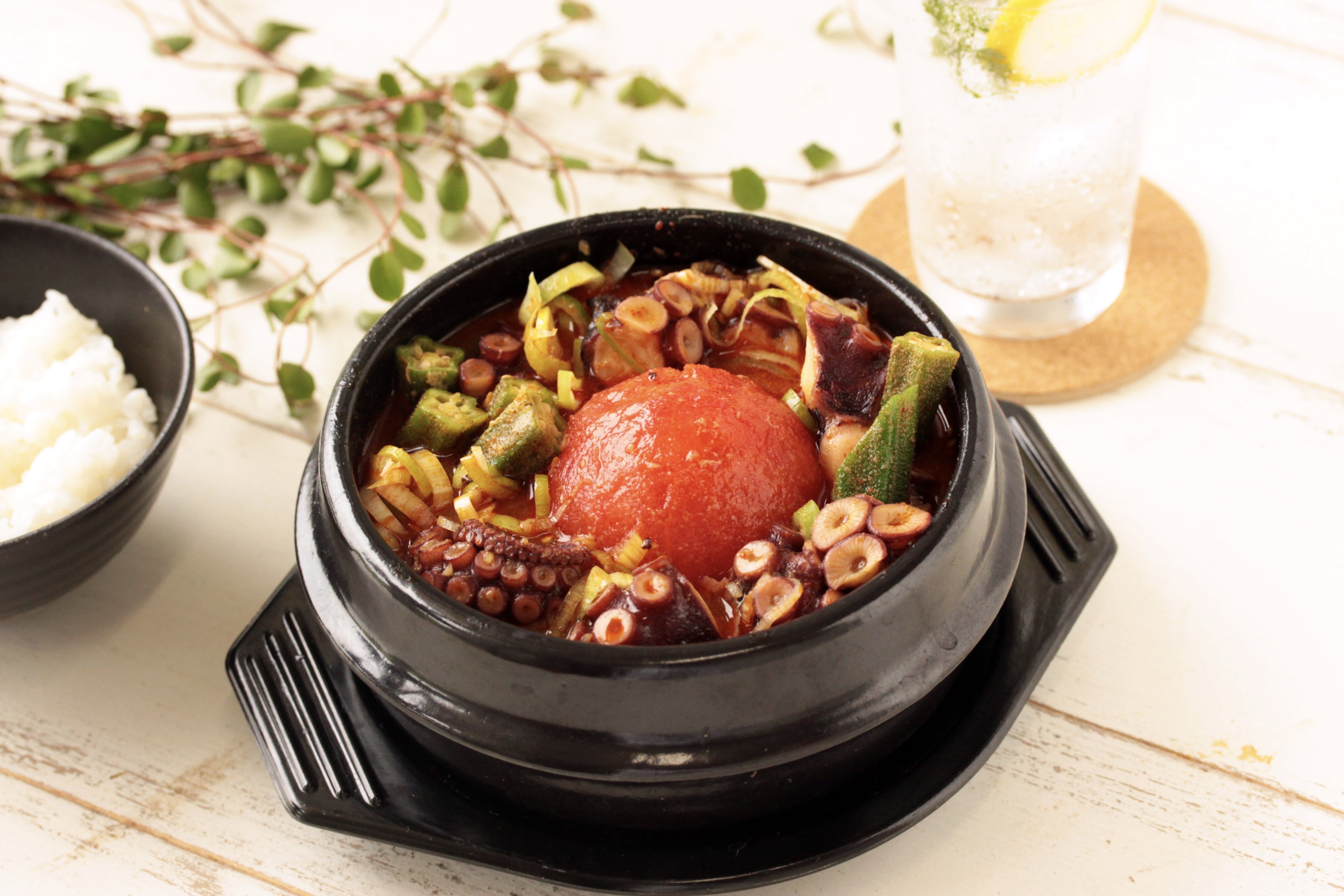 旨辛×酸味 リコピンたっぷり🍅トマトスンドゥブで食欲UP🌶️, ☀️夏に食べたい!美肌と元気のトマトスンドゥブチゲ,今回は、「スンドゥブチゲの素」を使った、夏にぴったりのアレンジレシピをお届けします。,「スンドゥブにトマト!?」と驚かれるかもしれませんが、この組み合わせが最高なんです。旨辛スープにトマトのまろやかな酸味と甘みが溶け込み、後引く美味しさに。,。