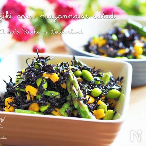 3ステップで常備菜♪ アスパラひじきの胡麻マヨサラダ。