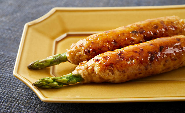 レシピ⑤ アスパラのつくね巻き インパクト大な居酒屋風映えメニュ。