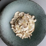 舟形マッシュルームと帆立トリュフバターの釜飯 香り高い舟形マッシュルーム と、肉厚な帆立を贅沢に使います。仕上げに溶けたトリュフバターが全体に絡み、芳醇な香りが広がります。濃厚ながらも上品な味わいで、ワインとの相性も抜群の一品です。