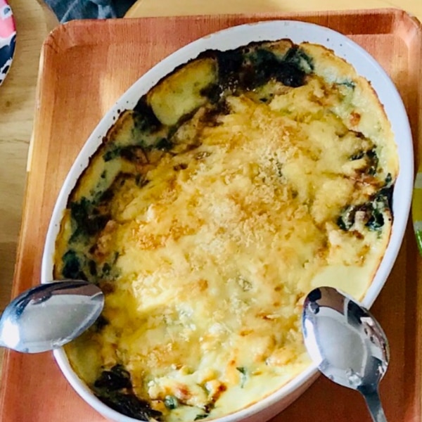 旦那絶賛!ほうれん草と鶏ひき肉のグラタン。