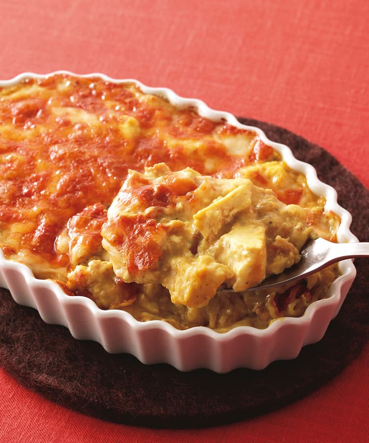 クリームやバター不使用!鶏肉ときのこの豆腐クリームグラタン。