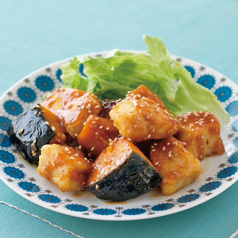 鶏&かぼちゃの揚げ焼き甘みそだれ。