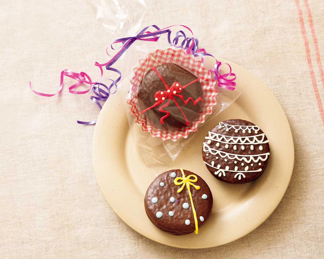 レースやリボン、水玉を描いて楽しい!いつものチョコパイがバレンタインスイーツに早変わり - レタスクラブ。