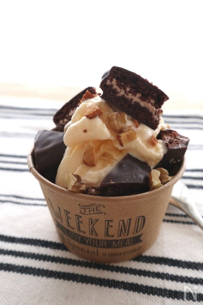 簡単スコップケーキ!チョコパイバナナティラミスの作り方。