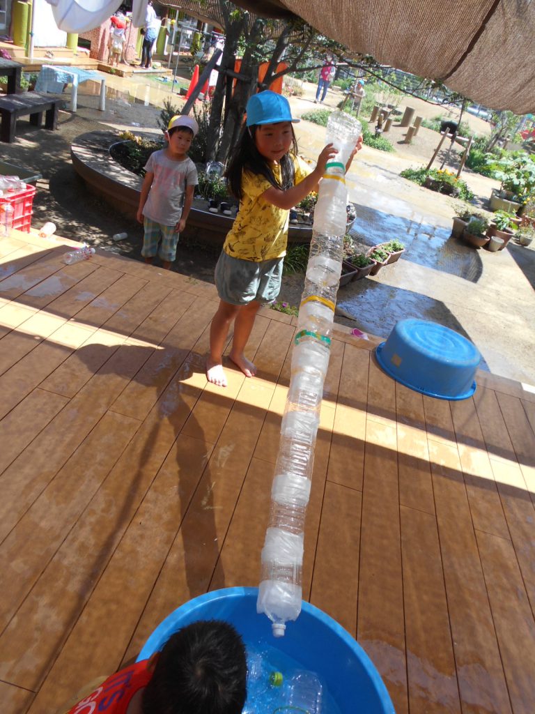 夏休みひだまり保育☆ウォータースライダー作ったよ☆* - 認定こども園。