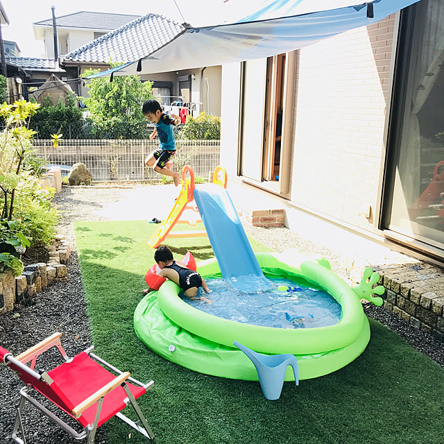玄関 入り口 こどものいる暮らし ウッドデッキでプール ウォータースライダー プール用の滑り台 などのインテリア実例 - 2018-04-2509:50:27RoomClip ルームクリップ。