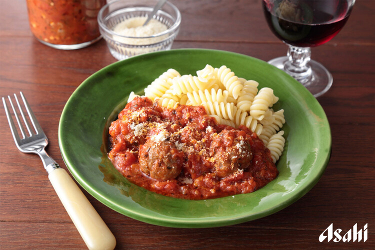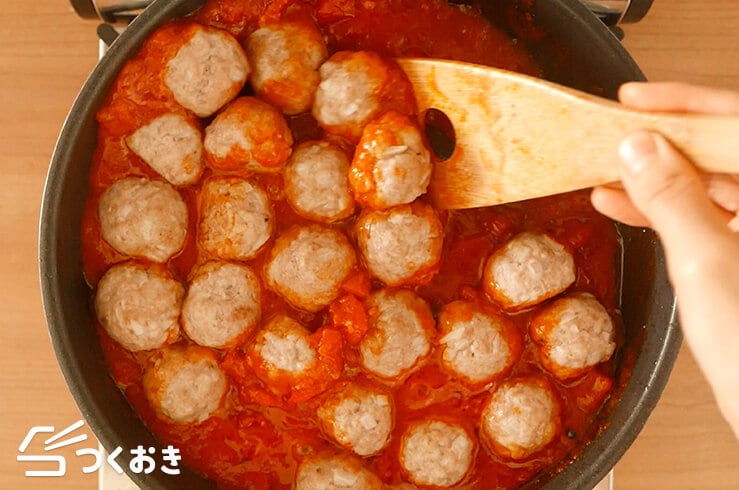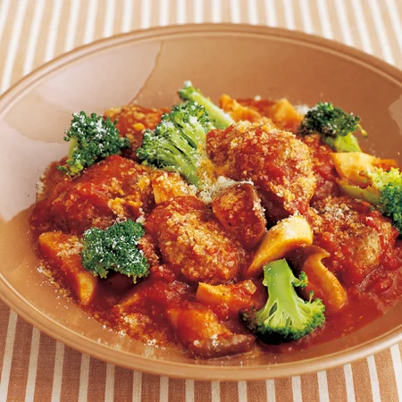 豚ひき肉でジューシーに。ミートボールのトマト煮込み。